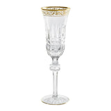 The tall, slender bowl preserves the effervescence of champagne, while the elegant stem ensures a comfortable and graceful hold. A delicate gold inlay with ornate motifs embellishes the rim, complemented by fine golden lines on the base for a regal finish.