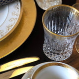 Inspired by the tableware of Queen Victoria, this crystal tumbler is adorned with a finely hand-applied gold inlay along the rim, complemented by thin gold lines at the base. Its generous size makes it ideal for serving water, cocktails, or fine spirits, while its regal detailing elevates any table setting.