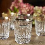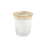 Inspired by the elegance of Queen Victoria, the tumbler is adorned with a luxurious hand-applied gold inlay around the rim, accented by delicate diamond and beveled cuts. The gilded details on the rim enhance its regal appeal, making it a striking addition to both casual settings and formal tablescapes.