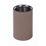 This partially leather-covered bottle cooler will give a fresh and modern look to any table setting, with high functionality and aesthetic performance. It keeps bottles chilled for several hours.
