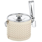 Designed for those who appreciate the art of entertaining, this stainless steel ice bucket is meticulously wrapped in handwoven leather, offering both functionality and a sophisticated aesthetic.