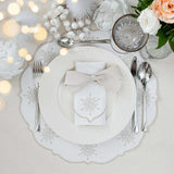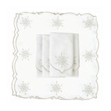Silver Stars napkins are crafted from fine Italian white linen and delicately embroidered with silver viscose thread. Each napkin features snowflakes that echo the softness and sparkle of the winter season. Thoughtfully shaped and beautifully finished, they belong at the heart of any refined Christmas table.
