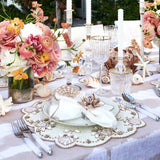 The Beachcomber Napkin Ring brings the essence of ocean treasures to your table, with hand-arranged shell beads blossoming like a Beach Rose. Inspired by coastal elegance, each napkin ring infuses your gatherings with the tranquility of seaside escapes.