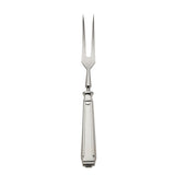 Silver-plated carving fork from the Art Deco collection. Its handle is characterized by structured, well-defined lines that reflect the clarity of the era’s design language. The fork head features two long, evenly aligned prongs that fit the piece’s extended silhouette and maintain balanced proportions. Subtle detailing on both front and back highlights the precise workmanship and consistent contours associated with Robbe & Berking.