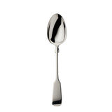 Silver-plated children’s spoon, part of the Spaten collection. It features an elongated handle with a straight profile that widens toward the base, creating stable balance and a geometric silhouette. The upper section transitions into a sculpted detail shaped by hand, a design element rooted in early 18th-century silverwork.