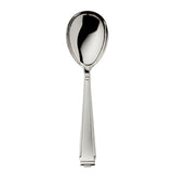 Silver-plated large compote and salad serving spoon from the Art Deco collection. Its handle is shaped with structured, well-defined lines that reflect the clarity of the era’s design language. The bowl features a broad, rounded form that suits the piece’s extended scale and maintains balanced proportions. Subtle detailing on both front and back highlights the precise workmanship and consistent shaping characteristic to Robbe & Berking.