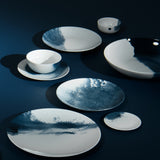 'Abysses', a captivating collaboration between Aurore de la Morinerie and Maison Raynaud, emerges from their shared creative vision. Aurore, with her artistic prowess and profound sensitivity, has masterfully translated the mesmerising landscapes of the deep sea, from sunlit plains to the inky abyss, onto Limoges porcelain. Her enchanting designs, where indigo hues gracefully intertwine with the pristine white of the renowned porcelain, result in truly unique and captivating pieces.