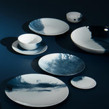 The Abysses Dessert Plate No. 2 by Raynaud captures the poetic beauty of the ocean floor, designed with the artistic vision of Aurore de la Morinerie. Its subtle gradient, transitioning from pure white Limoges porcelain into indigo textures resembling coral and marine landscapes, makes it a refined piece of functional art.