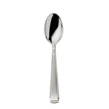 Silver-plated dessert spoon from the Art Deco collection. Its handle follows the collection’s structured styling, formed with straight surfaces and a defined outline typical of early-20th-century metalwork. The bowl has a smooth, rounded shape suited for smaller portions.
