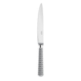 Arlequin Noir dinner knife by Ercuis reflects exceptional French craftsmanship. Each piece is lacquered in luminous black, engraved with the intricate guilloché pattern, then silver plated and meticulously assembled by hand in the Ercuis workshop. The Arlequin design, with its repeated motif, evokes the brilliance of a diamond, transforming the table into a statement of elegance, artistry, and contemporary French refinement.