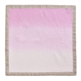 The linen Dip Dye napkin features an ombre gradation from soft lilac to deep, saturated purple. Hand-dipped and dyed, each napkin is finished with a subtle metallic foil border that adds a hint of shimmer. This rich, regal palette pairs beautifully with springtime table settings.