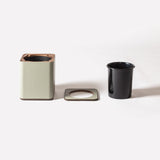 The structure is made from wood for strength, paired with a removable black plastic inner container for ease of cleaning and daily practicality. A leather-covered wooden lid, beautifully finished and seamlessly integrated, discreetly conceals the contents while maintaining a polished look, ideal for offices, yacht suites, dressing rooms or luxury residential spaces.