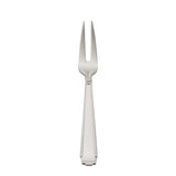 Silver-plated small meat fork from the Art Deco collection. Its handle is shaped with structured, well-defined lines that reflect the clarity of the era’s design language. The fork head has two pointy prongs that suit the piece’s compact scale and maintain balanced proportions. Subtle detailing on the front and back highlights the precise workmanship and consistent shaping associated with Robbe & Berking.