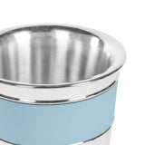 This insulated polished steel champagne bucket with a leather insert will give a fresh and modern look to any table setting, with high functionality and aesthetic performance.
