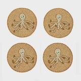 Crafted with care and backed in soft cotton, these coasters offer both visual appeal and practical protection for your surfaces. Whether you're entertaining aboard a yacht, in a beach house, or simply adding a nautical note to your summer table, the Octopus Coaster set blends charm with elevated style.