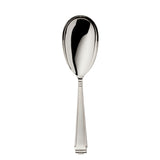 Silver-plated serving spoon from the Art Deco collection. Its handle is characterized by structured, well-defined lines that reflect the clarity of the era’s design language. The bowl has a broad, rounded form that suits the piece’s larger scale and maintains balanced proportions. Subtle detailing on both front and back highlights the precise workmanship and consistent contours associated with Robbe & Berking.