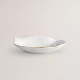 The Set of 2 Small Plates White with Golden Rim No5 – Indulge by Sarah-Linda embodies timeless elegance with a contemporary twist. Handcrafted in Limoges porcelain, each plate features a sculptural shell-like shape, a crisp white surface, and a delicate golden rim that highlights its organic curves.