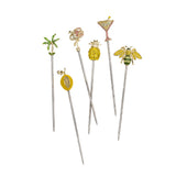 The Set of 6 Tropical Cocktail Picks by Joanna Buchanan brings playful sophistication to cocktails, canapés, and elegant entertaining. Each pick features a finely detailed tropical motif, including palm trees, flamingos, pineapples, bees, citrus, and cocktail glasses, all finished with sparkling embellishments that add a glamorous touch to any bar or table setting.