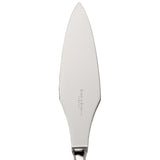 Silver-plated tart knife, part of the Spaten collection. It features an elongated handle with a straight profile that widens toward the base, creating stable balance and a geometric silhouette. The upper section transitions into a sculpted detail shaped by hand, a design element rooted in early 18th-century silverwork.