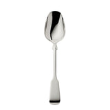 Silver-plated vegetable server, part of the Spaten collection. It features an elongated handle with a straight profile that widens toward the base, creating stable balance and a geometric silhouette. The upper section transitions into a sculpted detail shaped by hand, a design element rooted in early 18th-century silverwork.
