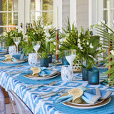 These linen napkins were inspired by the traditional Ikat textile pattern, which originated in Indonesia. For the Watercolor Ikat Napkins in blue, a section of a hand-painted indigo Ikat pattern was replicated and printed digitally on the linen napkins. They serve as a nod to classic design but with a modern twist.